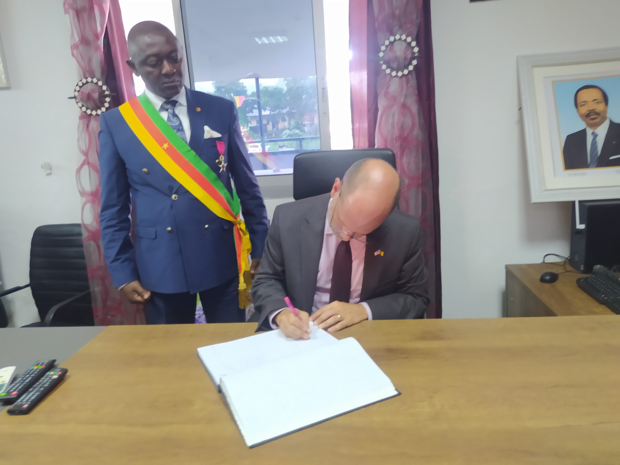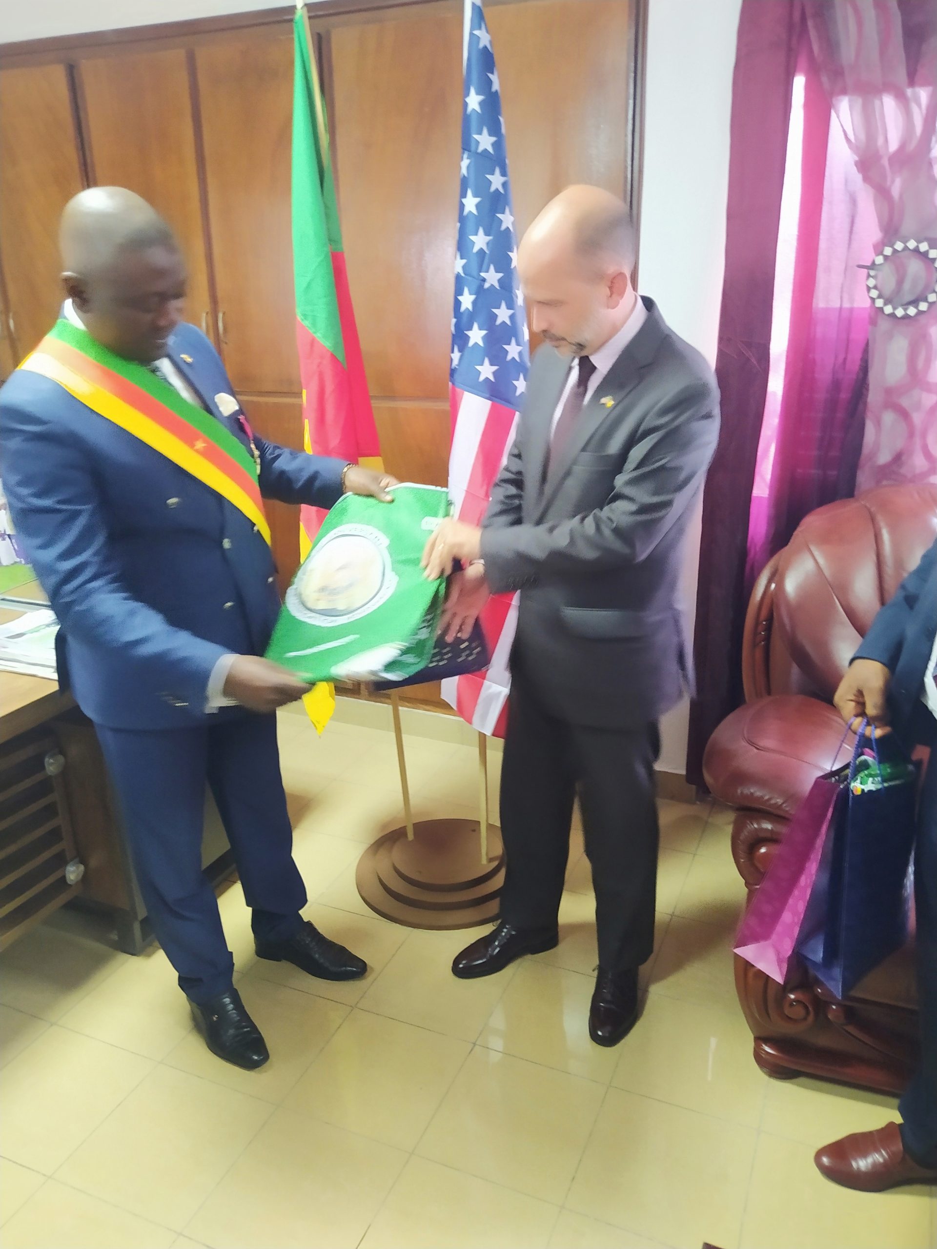 Wednesday 20th July 2022 was an historic day for the Buea council and the American Embassy in Cameroon as H.E Christopher John Lamora the US Ambassador for Cameroon was received in audience by David Mafani Namange Esq Mayor of the Buea council. In his official visit to the Buea municipality the Us senior diplomat was received by David Mafani Namange Esq mayor of the Buea Council with municipal councilors and some denizens present for the ceremony.